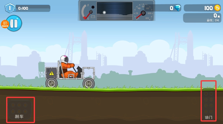 左下角控制车辆的前进与后退,右下角的油门则负责车辆的加速和减速。