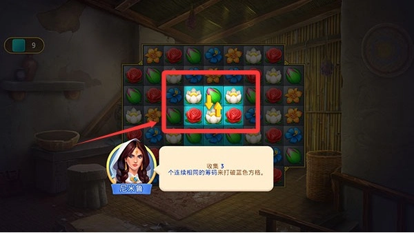 游戏规则是这样的:当凑齐三个连在一起的相同标记时,就能消除蓝色格子,把所有蓝色格子都消除掉,这一关就算通过了。