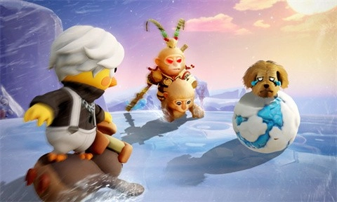 冰天雪地中,通过双人合作控制的人体雪橇,这种设定组成的梗我了解!就像那句“你抚琵琶奏琴弦~我坐戏子楼台前~”