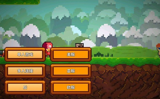 进入游戏后,我们先选择“开始”选项,接着会弹出单人游戏与多人连接的选择界面,点击“多人连接”按钮,就能看到美服、亚服、欧服这几个服务器选项,下面以亚服为例进行说明。