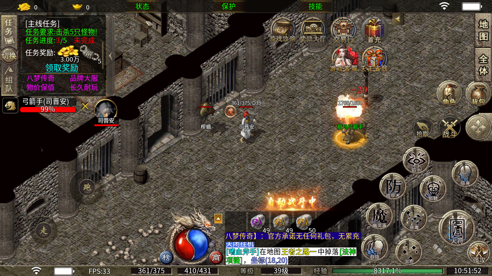 本服是全新推出的180经典复古版本,所有装备皆可通过打怪掉落获取,打造绿色健康的游戏生态,确保游戏内物价稳定保值,支持千人同时在线畅快体验!我们坚持超低消费理念,不设任何隐藏陷阱,也没有诱导性的充值礼包,让散人玩家在这里能够追逐梦想、实现梦想。