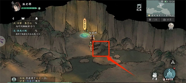 当我们随着主线首次抵达此处,会先触发主角遭大黄哥欺凌并被抢走蒲公英的剧情对话,接着与乐无愁交谈,她会让我们下到右侧的枯井中。第一次下井时,我们按任务指示拾取道具后返回,随后她会要求我们再次下井,这次枯井里会出现一条密道。