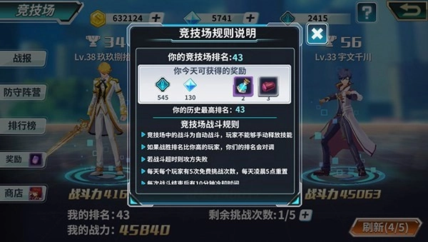 竞技场内奖励丰富,排名越高,奖励也随之越高。