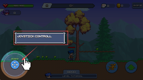 学习控制:熟悉游戏中的虚拟摇杆控制角色移动。