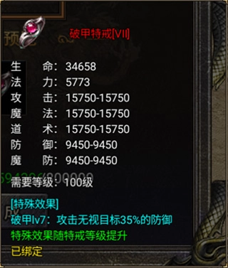 材料消耗:上一阶级破甲特戒+初始破甲特戒