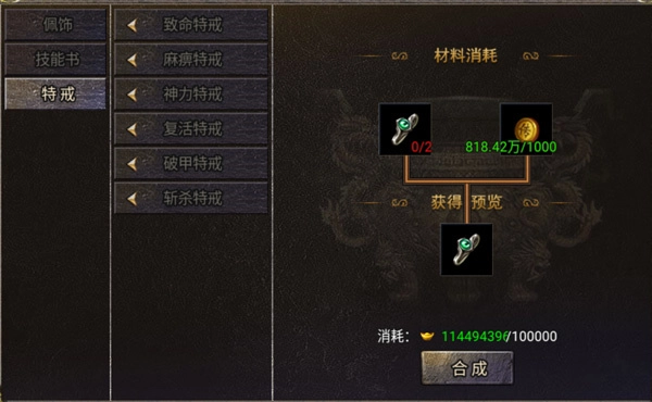 材料合成方式:可在合成-特戒面板中合成斩杀特戒