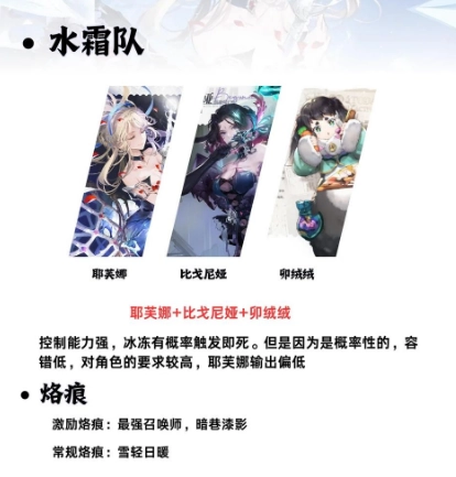 水霜队:以水霜为核心,具备出色的防御与恢复能力,是应对持久战的优选配置。