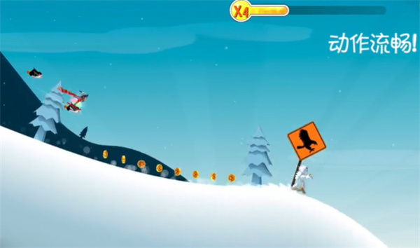 滑雪大冒险正版游戏巧妙融合了跑酷与滑雪的玩法,玩家能踩着滑雪板在雪地上畅快滑行。途中若遇到树木、石头等障碍物,需迅速躲避以顺利抵达终点,如此便能完美通关。此外,玩家还可随时与雪怪、老鹰等动物协作,从而全面提高通关几率。