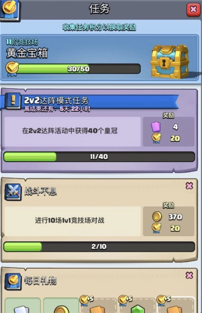 每日皇冠、宝箱位,一定要做完。