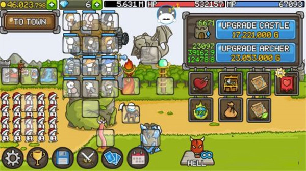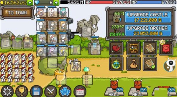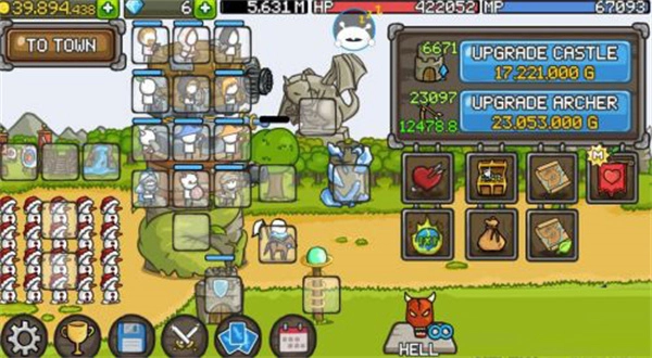 城堡塔楼具备成长功能,每一层都能安置英雄。当金钱逐渐增多时,就可以购买更多的英雄以及装备武器。