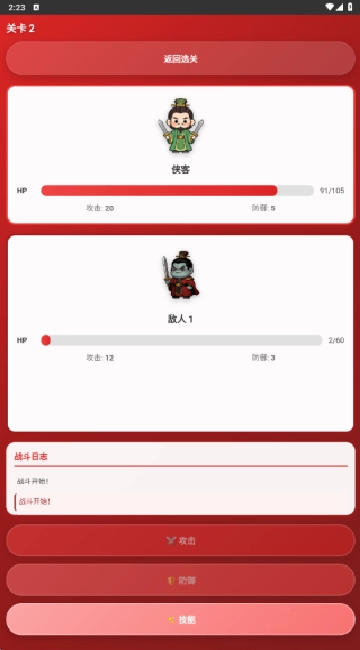 战斗系统以“攻击”“防御”“技能”这三大核心操作为核心展开。基础攻击能够稳定地对敌人造成伤害,其伤害数值由玩家当前的攻击力(ATK)来决定。