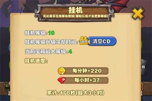 1. 宝箱等级上限与“挂机等级”相关——务必首先提升左侧的挂机等级,其初始为1级,随着挂机等级的提升,宝箱等级上限也会逐步提高。