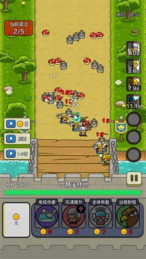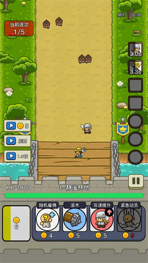 这是一款轻度塔防游戏,采用关卡制设计。战斗过程中金币会持续自动增加,每波怪物刷新时也会额外获得一些金币奖励。这些金币主要用于下方的肉鸽式四选一选项,不进行选择的话就无法召唤士兵参与战斗。由于金币资源增长速度较慢且总量十分有限,因此非常考验玩家的资源统筹能力和策略选择水平。游戏战斗支持多倍速功能,但开启加速后,玩家的决策速度和操作手速也必须相应提升,否则仍有可能面临战斗失败的风险。