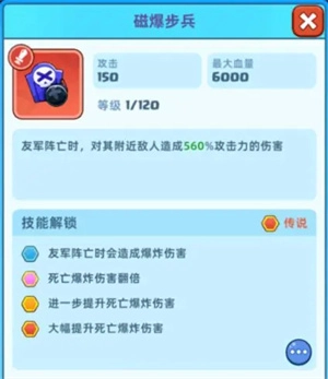 磁暴步兵:当友军单位阵亡时,会对该友军附近的敌人造成相当于自身攻击力560%的伤害