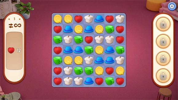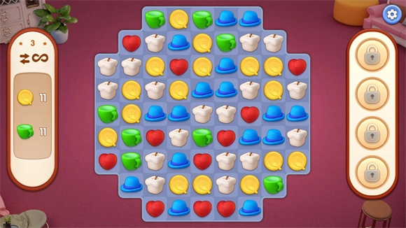 游戏里的钻石不能替代金币,原因是有些家具的解锁仅限使用金币。这意味着没办法直接靠充值来通关,必须得参与三消游戏才行,对多数玩家而言,这一点其实还挺友好的。