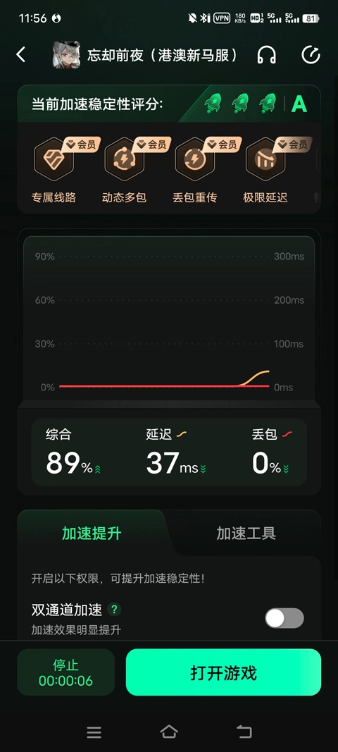 2. 加速完成后,点击下方的“打开游戏”按钮。