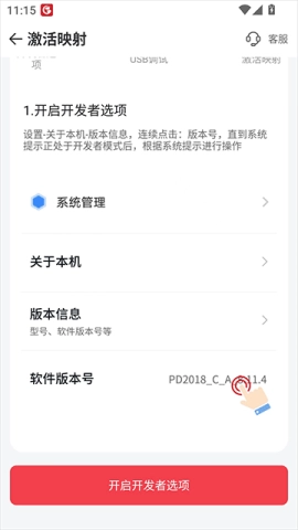 4、按照提示操作,找到页面最下方的“开启开发者选项”并点击它。