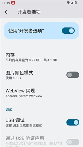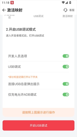 8、进入开发者选项,开启“USB调试”功能(部分机型或许还需要开启“连接USB时总是弹出提示”以及“仅充电模式下允许ADB调试”这两项设置)。