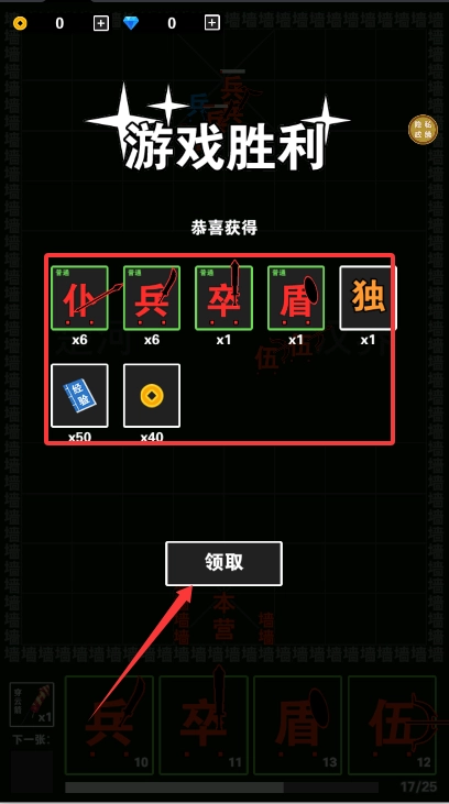 3、战斗胜利后,会获得大量资源,点击领取即可。