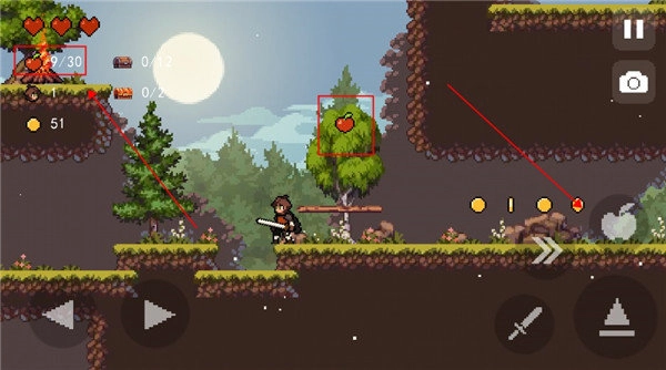 3、该物品能够用于远程攻击,不过需收集苹果方可发动攻击,左上角显示的便是你当前拥有的苹果数量以及可进行攻击的次数。