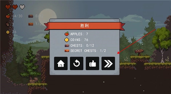 《苹果骑士》是一款动作冒险类平台游戏。在游戏中,你将探索美轮美奂的手工打造关卡,升级武器与技能,打败邪恶国王的军队,收复自己的王国!投身与成群邪恶巫师、骑士及生物的战斗之中!运用近战武器与远程技能击败敌人,开启跨越多个世界的精彩冒险之旅!每一关都有全新的障碍或敌人类型等你去发现、征服!获取强力皮肤、武器与技能!寻觅不同等级的武器和技能宝箱,装备它们来提升角色实力。最终以胜利者之姿现身,让王国重归和平。