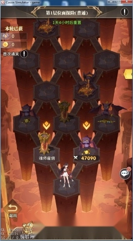 玩法介绍:每次向前选择一个格子,其他格子会消失,格子上会有守卫、魂石雇佣、水泉的各种事件,目标是前进通关地狱路