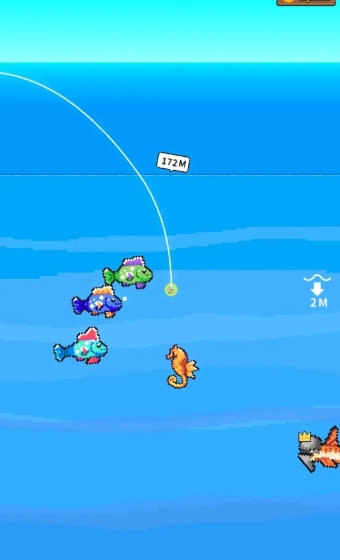 1. 像素画面的钓鱼玩法极为轻松,能让你迅速提升钓鱼技术。
