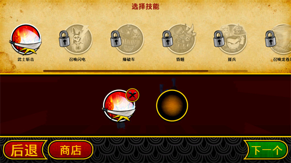 8、通过第50关后,就能自由选择关卡挑战了,还能得到100颗钻石。钻石可以这样分配:剑和弓各升级一次,剩下的全部用来升级大招。