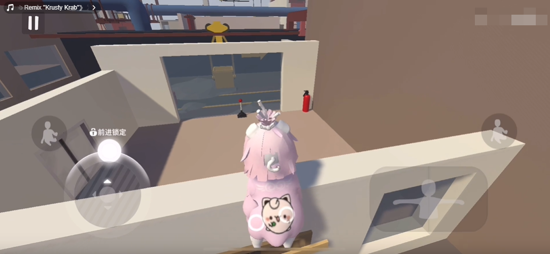 2、接着跳抓墙面后锁定按键。