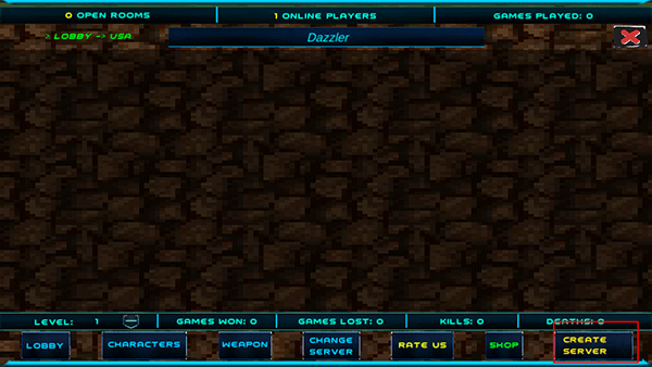 4、若需要创建房间来进行对战,请点击右下角的“create server”按钮。