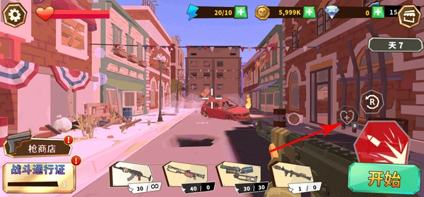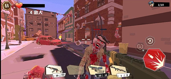 尽管采用低模卡通的美术风格,游戏却运用了FPS视角设计,使玩家能更直接地直面僵尸来袭的场景,再搭配血量显示条、精准瞄准机制等细节元素,进一步增强了游戏的真实感与紧张压迫感。