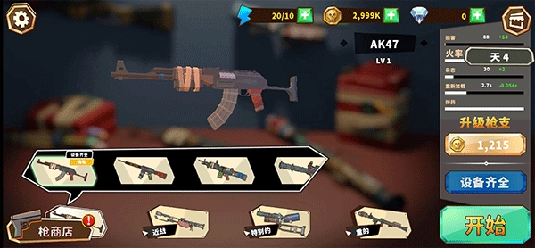 2、点击枪商店,在这里能够购买各类枪械,还可以对枪械开展升级操作;