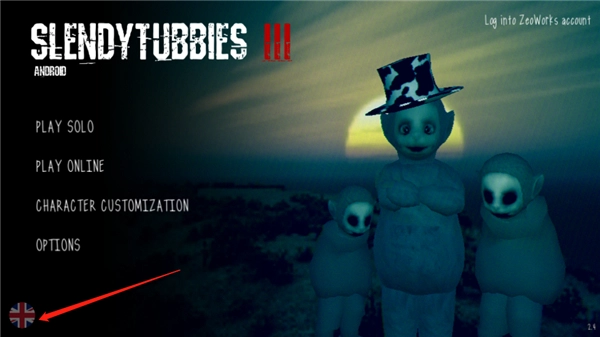 1、进入游戏首页后,映入眼帘的是英文界面,此时点击左下角的国旗图标即可。