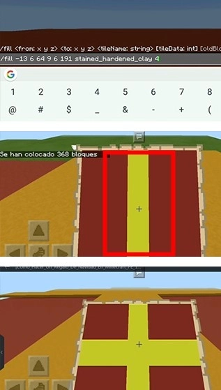 使用`fill`指令,利用红色黏土填满区域。替换指令中的x、y、z坐标为记录的红石块位置,其他指令内容不变。