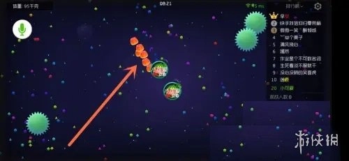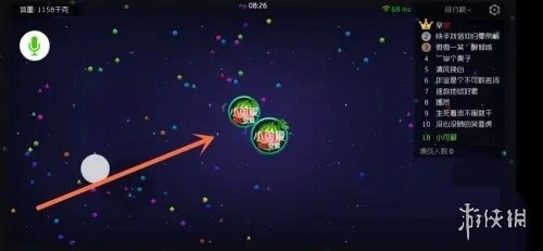 进入游戏后,快速成长为大球形态,接着把它分成两个小球。