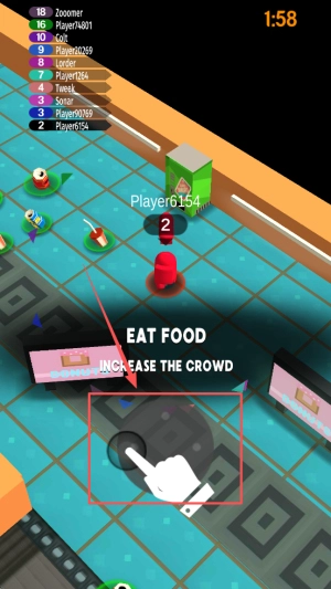 2、游戏开局1分58秒内连续吃掉DONUT,长度增长至16,人群数量瞬间翻倍。