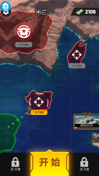 游戏设有多个可供挑战的关卡,玩家得依次解锁关卡才能进入战斗。