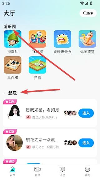 1、完成安装后,点击进入耳海,其首页设有各类游戏以及交流空间。