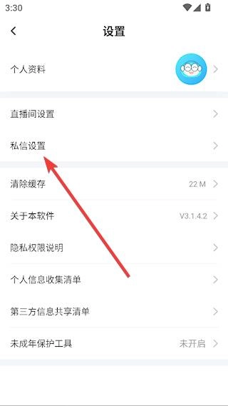 3、打开设置页面,寻找到【私信设置】并点击它。