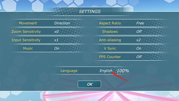 点击language旁边显示为“English 100%”的选项。