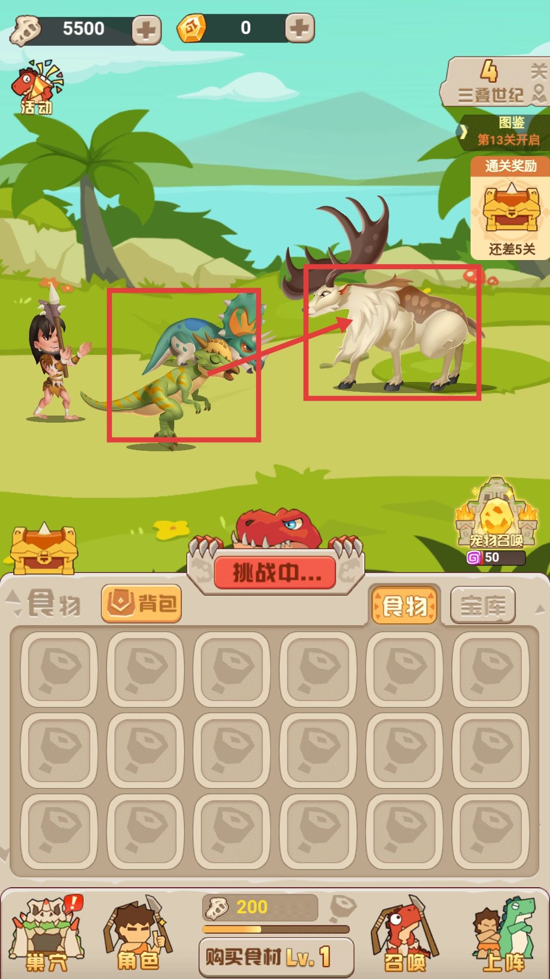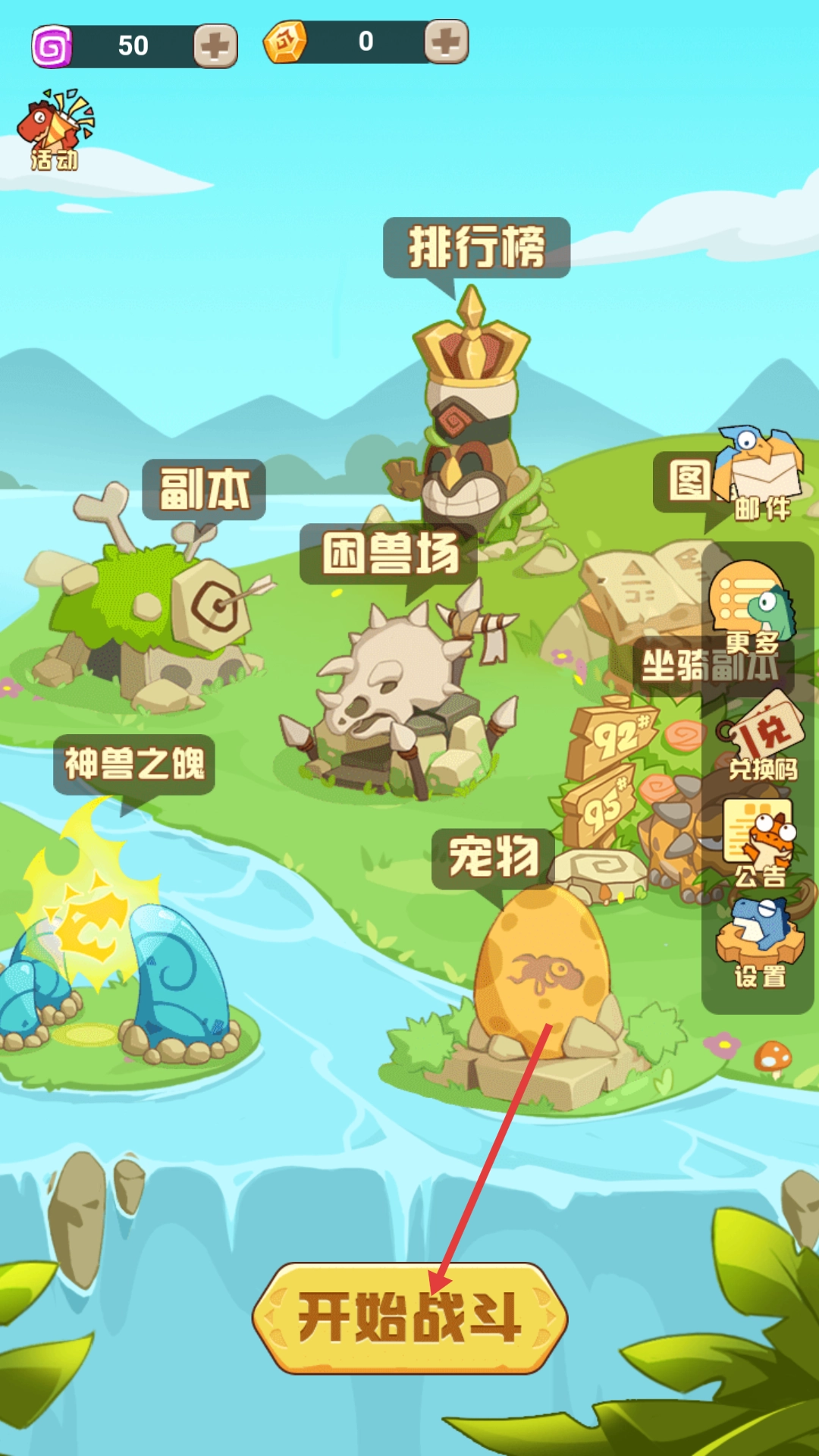 点击【开始战斗】按钮进入游戏界面后,就能参与副本、困兽场等多种玩法,开启充满刺激的史前战斗之旅。