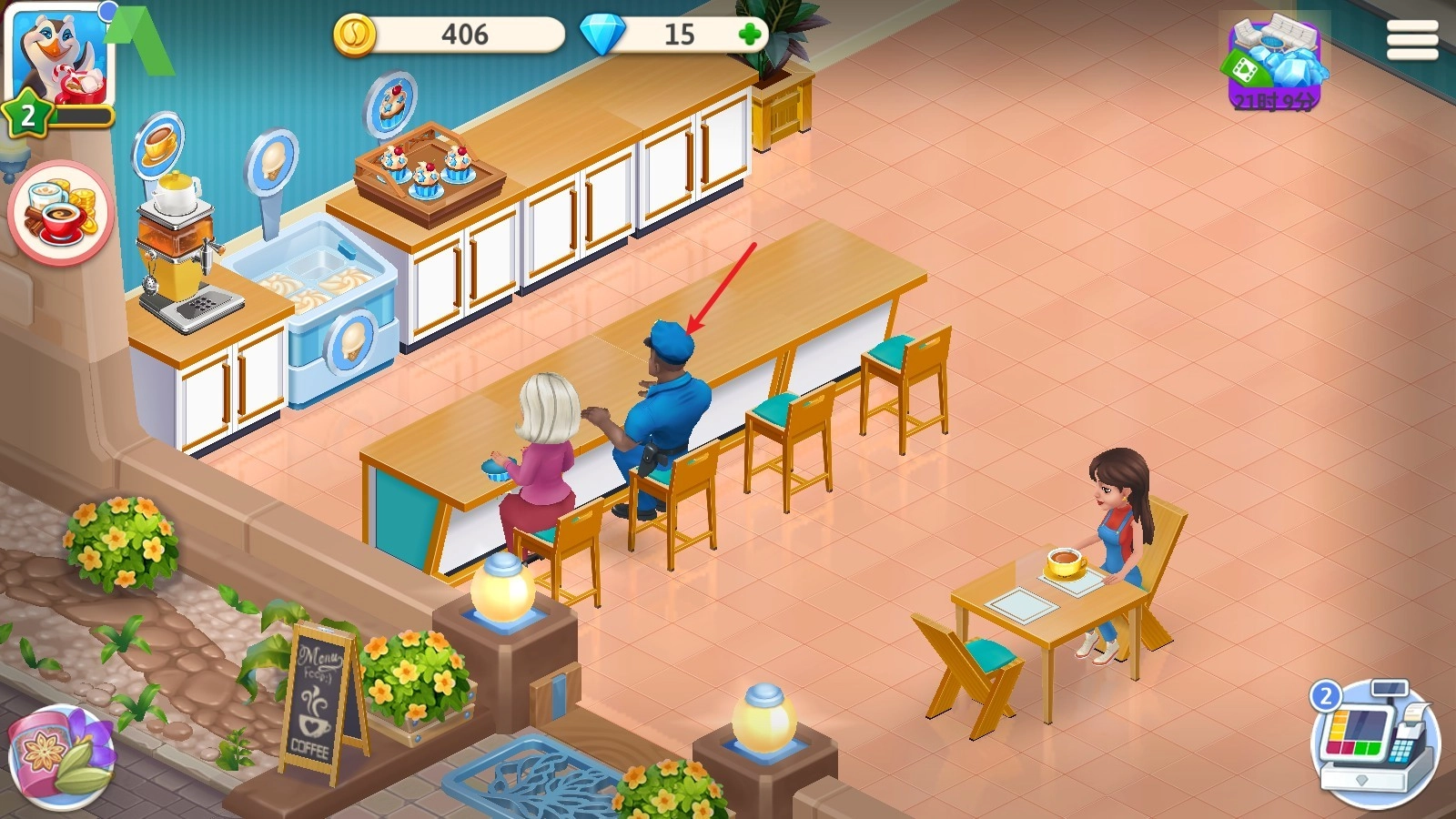 进入游戏后,你的咖啡馆就会迎来客人,点击客人就能为他们点餐。