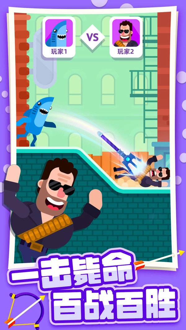 《弓箭大师》是一款即时对战射击类游戏。在游戏里,玩家需依据角色间的相隔距离以及阻挡的地形,来调整自身的瞄准角度与力度,把手中武器射向对手。武器击中对手不同身体部位,会造成不一样的伤害。当累计伤害将敌人血条清空,敌人就会进入晕眩状态,这时玩家能再得到一次攻击敌人的机会。再次对敌人造成伤害后,会触发角色的终极技能,向敌人施放出一次特效超酷炫的终结一击。 此外,游戏内还有数十款超酷炫的角色,每个角色都有专属的武器与终极技能。凭借这些炫酷招式,你能轻松赢得每一场对决。