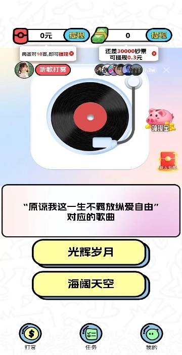 2、“歌词填写”环节主要考察你对歌词的记忆能力,游戏里还设置了音乐主题的脑筋急转弯环节,能有效激发玩家的思维活力。