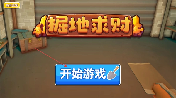 这是掘地求财的启动界面,点击界面里的开始游戏按钮就能进入游戏的挖掘关卡流程。