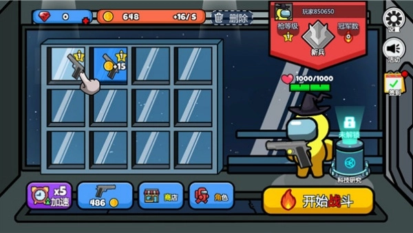 1、接着安装《太空饥饿大逃杀》这款游戏,进入游戏界面后,你可以通过购买武器的方式来增强自身的战斗能力。