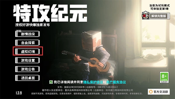 第一步点击虚拟幻境进入联机模式。