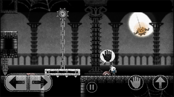 在本站完成安装后,点击打开游戏进入关卡。此时,左侧按键可操控小骷髅左右移动,右侧按键则用于控制攻击与跳跃。