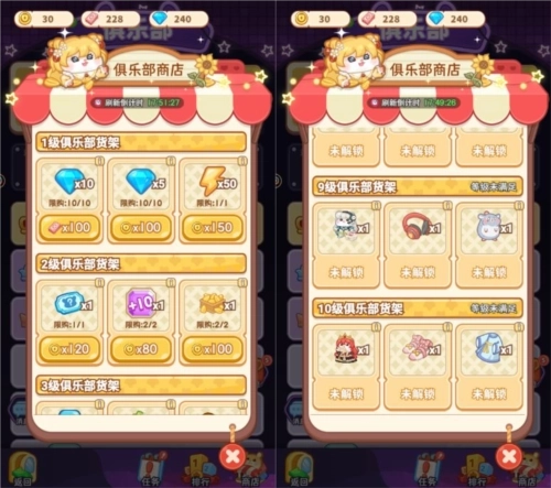 俱乐部商店的物品相当丰富,而且随着俱乐部等级的提升,钻石、体力、道具、合成元素乃至SSS级鼠鼠员工等都会逐步解锁。