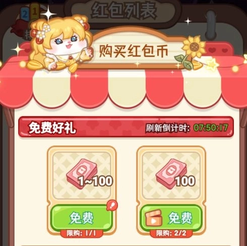 红包币的获取途径,除了抢红包,每日还能免费领取一定数量哦!各位店长们,是时候展现你们的手气和手速啦~